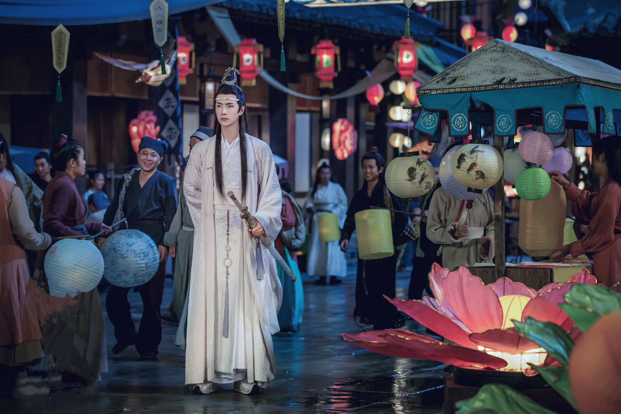 肖战和王一博主演的古装电视剧《陈情令》第39集:长街买花灯。特别的心给特别的你,我的寂寞逃不过你的眼睛。